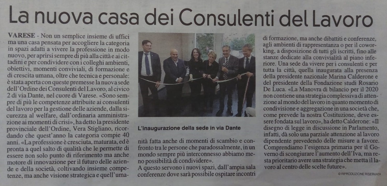 La nuova casa dei Consulenti del Lavoro La nuova casa dei Consulenti del Lavoro (Prealpina - dicembre 2019) Documentazione disponibile: Prealpina Inaugurazione 3 dic.jpg[ ]314 kB